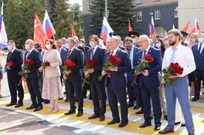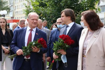 В церемонии возложения приняли участие Председатель ЦК КПРФ, Почетный гражданин Орла Г.А. Зюганов, член Президиума ЦК КПРФ, губернатор Орловской области А.Е. Клычков, Председатель ЦКРК КПРФ, первый секретарь Курского обкома КПРФ Н.Н. Иванов, первый секретарь Орловского обкома КПРФ, член Совета Федерации РФ В.Н. Иконников, секретарь ЦК КПРФ А.А. Ющенко.