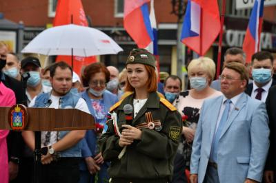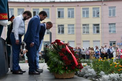 По традиции, в честь подвига советских воинов над зданием дома №5 на площади Мира был водружен дубликат Красного Знамени Победы, который 5 августа 1943 года подняли над городом Орлом воины-разведчики Василий Образцов и Иван Санько.