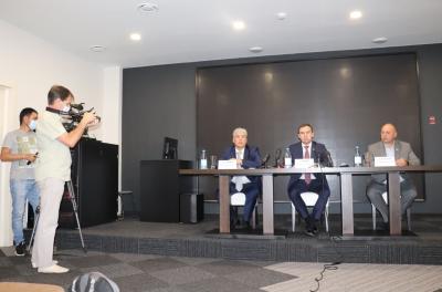 Первый заместитель Председателя ЦК КПРФ Ю.В. Афонин и руководитель совхоза имени Ленина П.Н. Грудинин в ходе рабочей поездки по регионам Сибири провели в столице Хакасии Абакане пресс-конференцию для региональных СМИ.