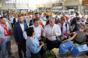 Юрий Афонин и Павел Грудинин прошли по улицам Красноярска, общаясь с горожанами, и посетили один из рынков города. Здесь они поговорили с продавцами и покупателями, оценили уровень цен. Выводы получились неутешительными Цены на продукты в Красноярске мало отличаются от московских при несравнимо более низких доходах большинства населения. Особенно удивила морковь по 100 рублей за килограмм и среднего размера свекла по 40 рублей за одну штуку. А ведь все это не надо везти из-за рубежа, можно выращивать прямо на красноярской земле. Очевидно, что созданные властью условия для работы сельхозпроизводителей, засилье перекупщиков и спекулянтов просто не оставляют возможности для поддержания адекватных цен на продукты питания. Ясно, что власть оказалась неспособной даже перед выборами остановить стремительный рост цен на товары первой необходимости. Цены выворачивают карманы простых людей. Страна ждет перемен. Эти перемены наступят с победой КПРФ.