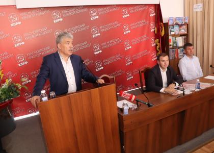 Юрий Афонин передал сибирским товарищам приветствие и пожелания успеха от лидера КПРФ Геннадия Андреевича Зюганова и поблагодарил красноярских коммунистов и первого секретаря крайкома Андрея Новака за активную и наступательную работу.