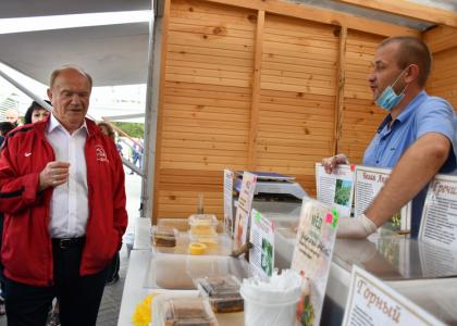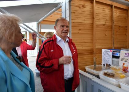 Геннадий Андреевич сам является потомственным пчеловодом. Поэтому его интерес к ярмарке меда не случаен. Лидер КПРФ осмотрел торговые ряды, пообщался с пчеловодами и посетителями ярмарки. Затем Г.А. Зюганов выступил перед журналистами: