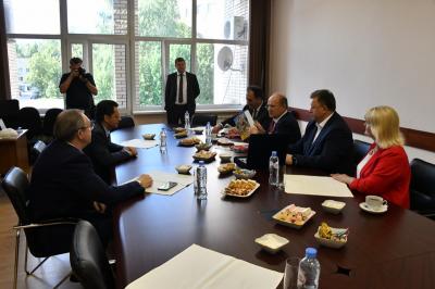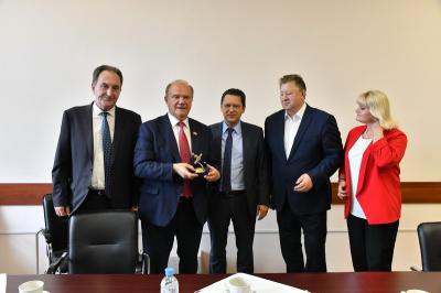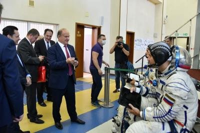 Затем делегация во главе с Председателем ЦК КПРФ Геннадием Зюгановым встретилась с руководством ФГБУ НИИ ЦПК имени Ю.А. Гагарина. Встреча продолжилась экскурсией по Центру подготовки космонавтов.