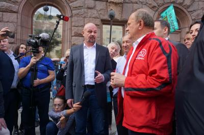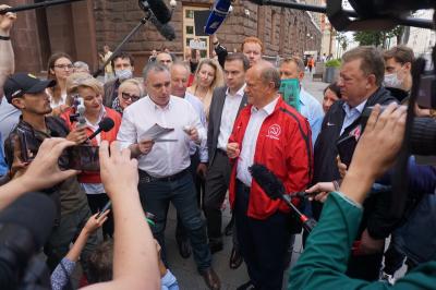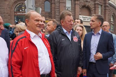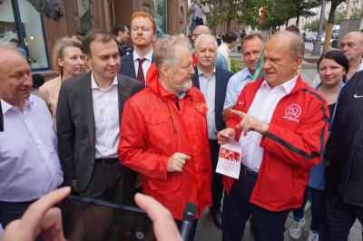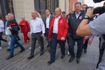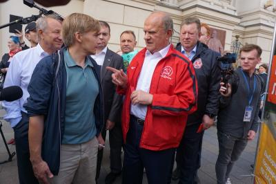 Лидера коммунистов сопровождали первый заместитель Председателя ЦК КПРФ Ю.В. Афонин и заместитель Председателя ЦК КПРФ В.И. Кашин.