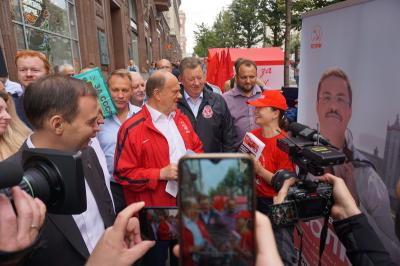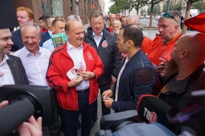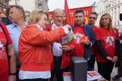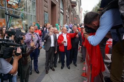 26 августа 2021 года, в рамках акции «Красные в городе», в Москве, на Тверской улице прошла презентация агитационной продукции кандидатов в депутаты Государственной Думы и Московской городской думы от КПРФ. В мероприятии принял участие Председатель ЦК КПРФ, Руководитель фракции КПРФ в Госдуме Г.А. Зюганов.