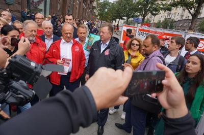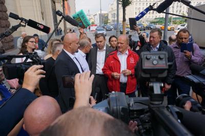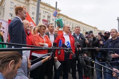 Около 12:00 участники акции собрались у здания мэрии Москвы вблизи избирательно куба кандидата в депутаты Государственной Думы по 208-му избирательному округу Н.А. Останиной. Здесь Г.А. Зюганов, В.И. Кашин, В.Ф. Рашкин, Д.А. Парфенов и Н.А. Останина выступили перед журналистами, изложив основы предвыборной программы партии «10 шагов к власти народа», в том числе, в ее московском разрезе. Ведь для столицы особенно актуальна забота о малоимущих, о детях, женщинах и стариках. Кроме того, выступающие поделились опытом работы народных предприятий и рассказали о тех законах, которые будут приняты в случае победы коммунистов на выборах в Госдуму.