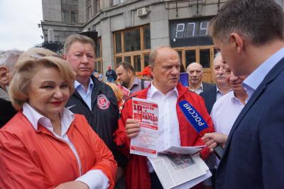 В завершение Председатель ЦК КПРФ Г.А. Зюганов подчеркнул, что 19 сентября у граждан страны будет последняя возможность решить вопрос мирно, бюллетенем. Фактически, выбор стоит между социализацией и дальнейшей фашизацией жизни. «Мы за мирный выход из этого тяжелого кризиса, - заявил Геннадий Андреевич. – Поэтому, голосуя за первый номер в списке, вы голосуете за мир, дружбу, за удвоение зарплат, пенсий. За то, чтобы все недра работали на каждого человека. За то, чтобы женщины, дети, старики были счастливы. Поддержим номер один!»