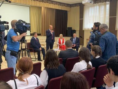 Мамам и дедушкам скажите, что к вам приезжал Г.А. Зюганов, с товарищами. КПРФ идет 19 сентября 2021 года на выборы в Государственную Думу ФС РФ под № 1, в Московскую областную Думу – под №5. Не забывайте наших кандидатов – Б.В. Иванюженков, он депутат Госдумы, первый заместитель председателя очень крупного комитета Госдумы, также ознакомьтесь с его программой. Директору гимназии Н.А. Квашенниковой и коллективу гимназии всех благ, удачи. Я вам дарю свой двухтомник стихов и еще одну книгу стихов, вы посмотрите, я думаю, вам понравится, в библиотеке найдете. Спасибо вам большое! Удачи!