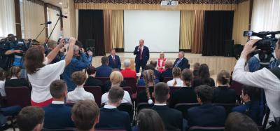 - Дорогие друзья! Я хочу поприветствовать всех наших славных педагогов и тружеников-родителей! Я мечтал побывать в вашей славной школе, потому что родом с Орловщины и постоянно проезжаю через ваш чудный город, надеялся побывать в школе, которая гордо носит имя Подольских курсантов. В октябре исполнится ровно 80 лет, когда молодые ребята, во многом – ваши сверстники, сверстники старшеклассников, здесь, под Москвой, грудью закрыли нашу столицу и Родину от нашествия фашистов. 3500 курсантов приняли тот бой. 2500 курсантов остались лежать в подмосковной земле, овеяв себя бессмертной славой и великим подвигом. Мне приятно, что ваша школа продолжает эти лучшие и славные традиции. Уверен, что сегодня, в это грозное, сложное время, когда нашей Родине снова брошены вызовы, когда ее пытаются опутать санкциями и угрожать, эта школа будет растить таких же славных героев, как Подольские курсанты. Я надеюсь, что вы достойно пройдете и нынешний учебный год. Я благодарю всех вас, кланяюсь вашему учебному, трудовому, славному подвигу. Поздравляю вас с началом учебного года! В добрый путь, мои юные друзья!