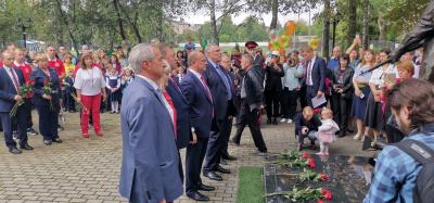По завершении экскурсии, Председатель ЦК КПРФ Г.А. Зюганов и делегация коммунистов возложили цветы к памятнику Подольских курсантов на территории гимназии, почтили память молодых ребят, защищавших подмосковную землю. Их подвиг вечен