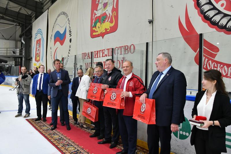 Лидер КПРФ Г.А. Зюганов обратился к присутствующим на ледовой арене спортсменам и зрителям на трибунах: