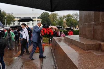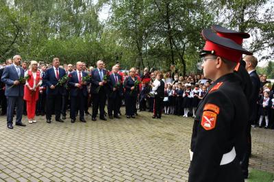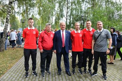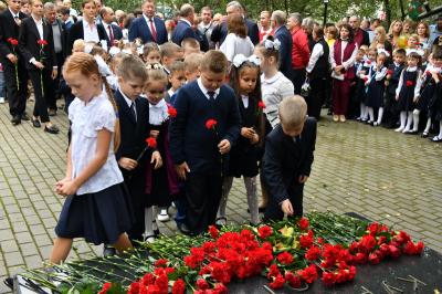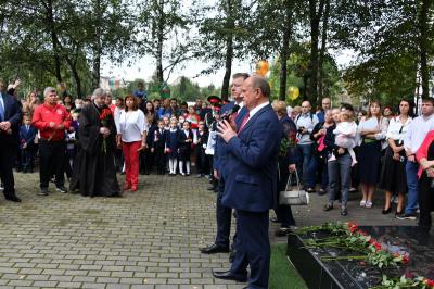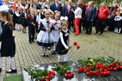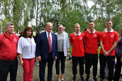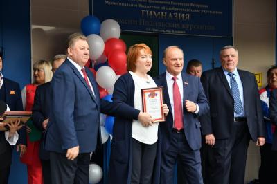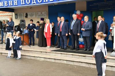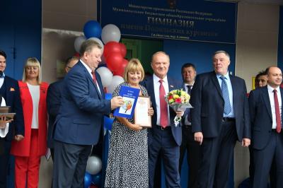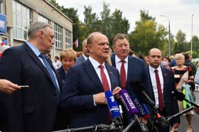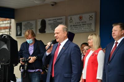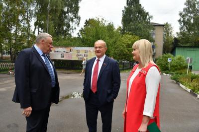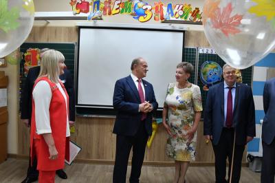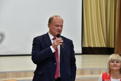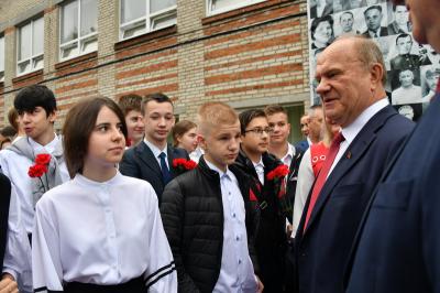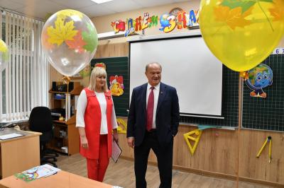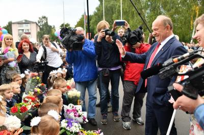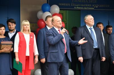 Вначале лидер КПРФ Геннадий Зюганов посетил городскую гимназию имени Подольских курсантов. Лидер российских коммунистов на праздничной школьной линейке поздравил педагогов и учеников этого учебного заведения с Днем знаний.