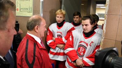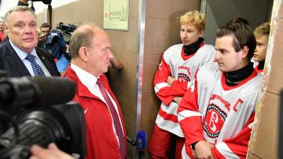 Лидер КПРФ Г.А. Зюганов обратился к присутствующим на ледовой арене спортсменам и зрителям на трибунах: