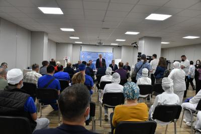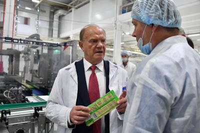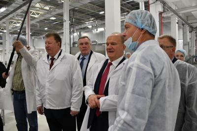 Г.А. Зюганов вначале осмотрел предприятие, а затем выступил перед трудовым коллективом, подробно рассказав о предвыборной программе КПРФ. Затем В.И. Кашин вручил почетные грамоты комитета Госдумы по аграрным вопросам сотрудникам предприятия.