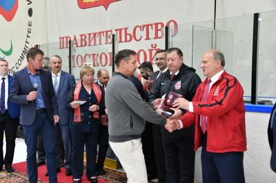 Я вас поздравляю от имени нашего спортивного клуба Коммунистической партии Российской Федерации. В клубе КПРФ 100 своих команд по мини-футболу. В нашем клубе прекрасно выступают силовики, у нас есть свои великолепные шахматисты, первоклассные пловцы. Мы победили на чемпионате по волейболу. Я хотел бы вас всех поприветствовать прежде всего, от нашего спортивного клуба и пожелать вам новых достижений. Я рад, что под этим куполом занимается почти 700 молодых ребят, которые проходят классную школу мужества.