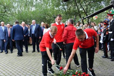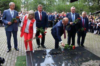 По завершении экскурсии Председатель ЦК КПРФ Г.А. Зюганов и делегация коммунистов возложили цветы к памятнику Подольских курсантов на территории гимназии, почтили их память. Их подвиг вечен!