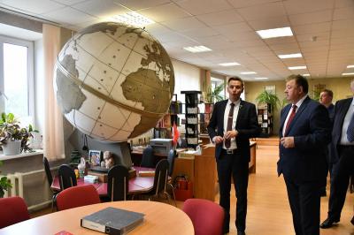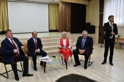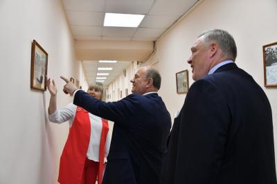 Экскурсию по гимназии для делегации КПРФ провела ее директор Н.А. Квашенникова. Лидер КПРФ пообщался с педагогами и учащимися, провел осмотр учебных классов и школьного музея. Затем Г.А. Зюганов провел урок мужества для учащихся девятых классов.