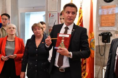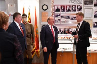Надолго запомнится делегации КПРФ посещение школьного музея. Музей курсантов Подольских пехотного и артиллерийского училищ был открыт 23 февраля 1965 года, он стал первым музеем в СССР, посвященным подвигу Подольских курсантов. Основатель музея – Д.Д. Панков, почетный гражданин г. Подольска, заслуженный учитель России, доктор исторических наук, сын военного комиссара 4-го батальона Подольского пехотного училища Д.В. Панкова. В 2012 г. первый в стране музей Подольских курсантов был реконструирован, а уже в 2013 г. признан лучшим школьным музеем Московской области. В результате более чем полувековой работы красных следопытов школьный музей Подольских курсантов обладает разнообразными экспозиционными и богатыми фондовыми материалами. На стендах и в витринах представлена подробнейшая информация о подвиге курсантов с 5 по 24 октября 1941 года: фотографии ключевых участников обороны, карты и схемы боевых действий, копии приказов и донесений с фронта. Сейчас в музее работают уже внуки тех, кто в шестидесятые годы стоял у истоков его создания. Тем самым, сохраняется преемственность поколений, верность традициям и девизу первого музея Подольских курсантов — «Память сильнее времени!».