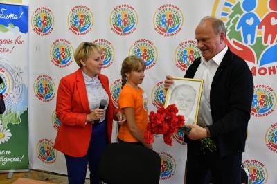 В субботу, 4 сентября, в подмосковном оздоровительном комплексе «Снегири» Председатель ЦК КПРФ, Руководитель фракции КПРФ в Государственной Думе ФС РФ Г.А. Зюганов провёл урок мужества для детей Донбасса, отдыхающих по программе «Дети России – детям Донбасса».