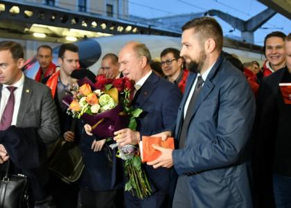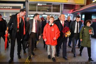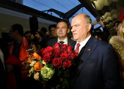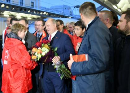 На железнодорожном вокзале лидера КПРФ встретили ленинградские коммунисты и сторонники партии. В числе встречающих были: первый секретарь Санкт-Петербургского горкома КПРФ Р.И Кононенко, первый секретарь Ленинградского обкома КПРФ В.А. Царихин, руководитель фракции КПРФ в городском Парламенте Санкт-Петербурга О.А. Ходунова, депутат фракции КПРФ в Госдуме С.М. Пантелеев, член ЦК КПРФ Ю.П. Белов, член Совета Федерации А.Н. Некрасов, а также представители СМИ.