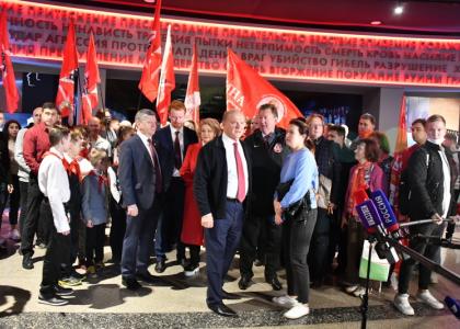 По окончании экскурсии Г.А. Зюганов сердечно поблагодарил сотрудников музея и вручил им сувениры с символикой КПРФ. Он восторженно сказал: «Мы прошли сегодня дорогой отцов и дедов-победителей. Фашисты шли в нашу страну не для того, чтобы нас завоевывать, а для того, чтобы нас уничтожить. Но советский народ во главе с Коммунистической партией и Верховным Главнокомандующим товарищем Сталиным сумели сломать хребет фашистскому зверю. Эта тема блестяще передана в Музее Победы. Большое спасибо сотрудникам музея за то, что вы храните память о подвиге нашего народа. Это особенно важно в нынешнее сложное время, когда Запад объявил России гибридную войну. Нацисты снова маршируют по Прибалтике, бандеровцы и цэрэушники захватили власть на Украине. В основе этой гибридной войны – ложь и провокации. Сегодня вопрос о безопасности России стоит исключительно остро».