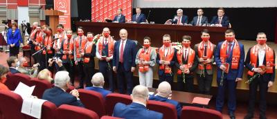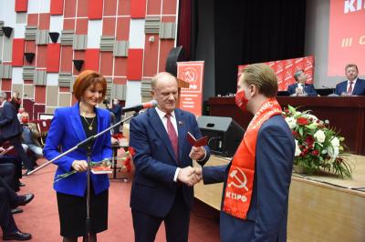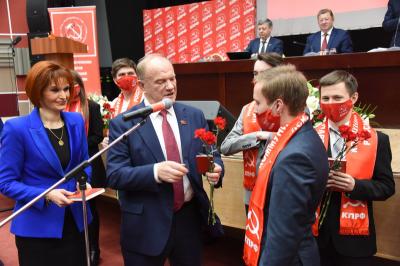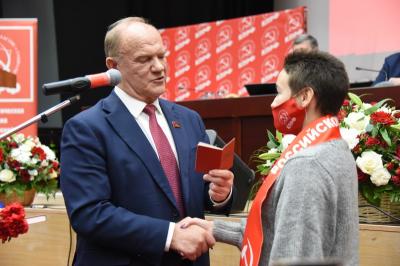 При открытии работы Пленума его участники почтили память недавно ушедших из жизни товарищей – И.А. Богачёва и А.В. Воробьева. По уже сложившейся традиции, Г.А. Зюганов торжественно вручил партийные билеты молодым коммунистам.