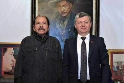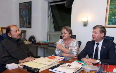 Встреча Президента Никарагуа Даниэля Ортеги с заместителем Председателя ЦК КПРФ Дмитрием Новиковым состоялась в Манагуа. Во встрече принял участие Чрезвычайный и полномочный посол России Александр Хохоликов, который передал Даниэлю Ортеге официальное поздравление Президента РФ Владимира Путина в связи с победой на национальных выборах.