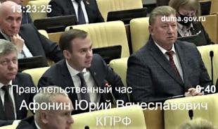 Первый заместитель Председателя ЦК КПРФ Ю. В. Афонин на «правительственном часе» в Государственной Думе задал вопрос генеральному прокурору РФ И. В. Краснову.