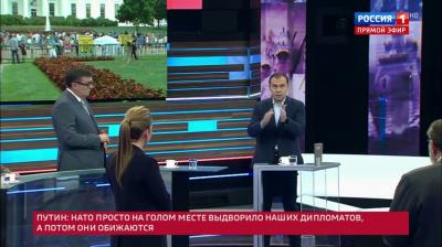 Участвовавший в дискуссии политолог Алексей Мартынов, сравнив нынешнюю международную ситуацию с той, что имела место в начале XX века, завел известную пропагандистскую песню о том, что царская Россия якобы очень успешно развивалась, а также успешно воевала в Первой мировой войне, но вот коварные революционеры с помощью внешних сил разрушили великое государство. А если бы не эта беда, то Россия доминировала бы в XX столетии. Юрий Афонин урезонил господина политолога, напомнив очевидные факты: именно действия властей во главе с Николаем II привели Россию к государственному краху, а Советской власти пришлось восстанавливать нашу разрушенную государственность. Даже ведущая программы Ольга Скабеева не согласилась с исторической версией Мартынова, заметив: «говорить, что мы удачно выступили в Первой мировой войне – это очень одиозное высказывание».