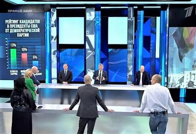 Из всего многообразия внутрироссийских и международных событий для старта дискуссии ведущие программы выбрали тему президентских выборов в США. Несмотря на то, что до них остаётся три года, в стране активно обсуждается, кто именно будет представлять Демократическую партию. Опросы говорят о перспективных позициях нескольких претендентов. В их числе чернокожие политики-женщины Камала Харрис и Мишель Обама, а также белый политик-гей Пит Буттиджич.