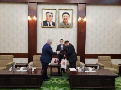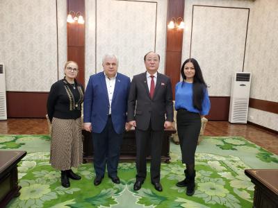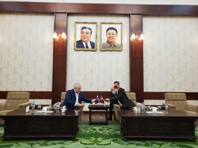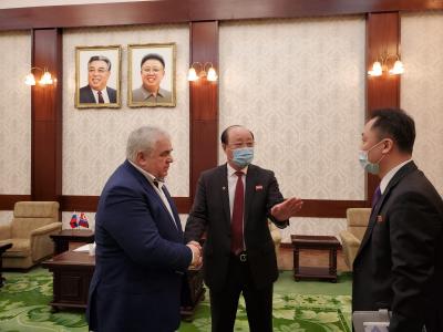27 января в посольстве Корейской Народно-Демократической Республики состоялась рабочая встреча секретаря ЦК КПРФ, Первого заместителя Председателя ЦС СКП-КПСС, Первого заместителя Председателя Комитета ГД по делам СНГ, евразийской интеграции и связям с соотечественниками, руководителя депутатской группы дружбы по связям с Парламентом КНДР Казбека Куцуковича Тайсаева с Чрезвычайным и полномочным Послом КНДР в РФ Син Хон Чхолем.