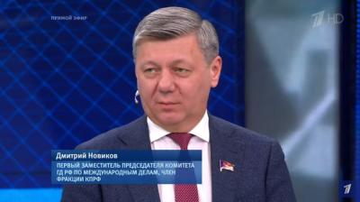 Дмитрий Новиков согласился с мнением, что в ближайшие дни со стороны Украины может быть осуществлена военная провокация. На вопрос ведущего Анатолия Кузичева, какой должен быть ответ России, представитель КПРФ ответил: «Если агрессия будет очевидной, то ответ на неё должен быть полномасштабным. Я считаю, что Львов – это не бандеровский город. И не польский. Там тоже живут украинцы и русские. И они имеют право воссоединиться и жить в составе всей своей Родины».