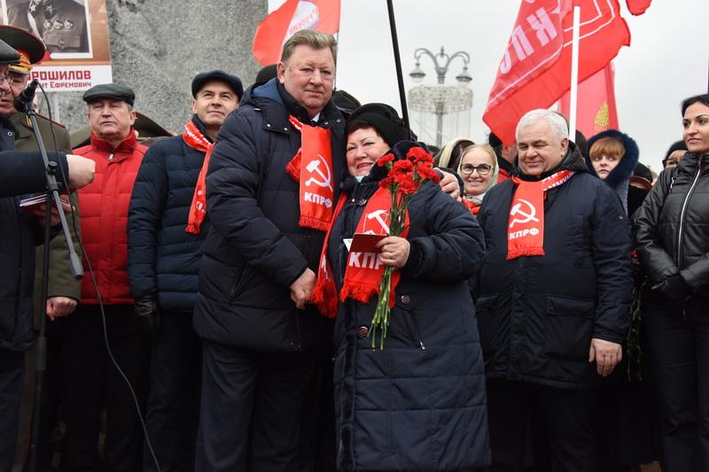 В торжественной церемонии приняли участие первый заместитель Председателя ЦК КПРФ Ю.В. Афонин, член Президиума, секретарь ЦК КПРФ К.К. Тайсаев, член Президиума, секретарь ЦК КПРФ С.П. Обухов, член Президиума, секретарь ЦК КПРФ Н.В. Арефьев, член Президиума, секретарь ЦК КПРФ Г.П. Камнев, член Президиума ЦК КПРФ, первый секретарь Московского обкома КПРФ Н.И. Васильев, секретари ЦК КПРФ М.В. Дробот, С.Э. Аниховский и А.А. Ющенко, первый секретарь Московского горкома КПРФ В.Ф. Рашкин, депутаты-коммунисты различных уровней.