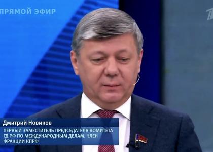 В специальном выпуске программы «Время покажет» на Первом канале состоялось обсуждение политико-дипломатических и информационных аспектов специальной операции, проводимой Вооружёнными Силами России на территории Украины, Донецкой и Луганской народных республик. В дискуссии принял участие заместитель Председателя ЦК КПРФ, первый заместитель Председателя Комитета Государственной Думы по международным делам Дмитрий Новиков.