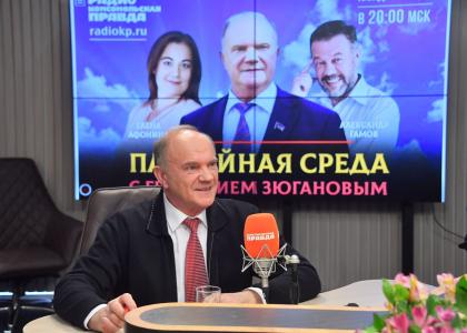 Вчера на радио «Комсомольская правда» состоялась «Партийная среда с Геннадием Зюгановым». Лидер КПРФ вместе с соведущими Александром Гамовым и Еленой Афониной обсудил важные аспекты ситуации на Украине.