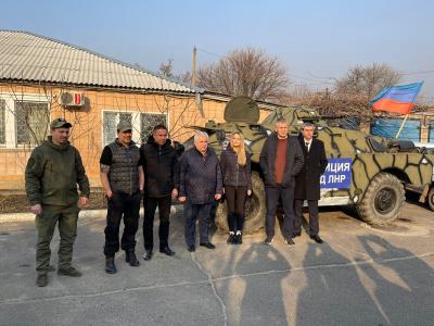 В четверг, 24 марта, депутаты Государственной думы Казбек Тайсаев, Александр Ющенко, Алексей Куринный, а также сенатор и член Совета Федерации от Ульяновской области Айрат Гибатдинов в составе делегации фракции КПРФ прибыли с гуманитарным визитом в Луганскую Народную Республику.