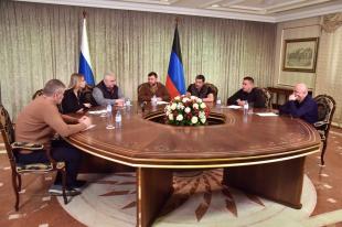 25 марта в рамках гуманитарной поездки депутатов Госдумы Казбека Тайсаева, Александра Ющенко, Алексея Куринного и сенатора Айрата Гибатдинова в ЛДНР состоялась встреча с главой Донецкой Народной Республики.