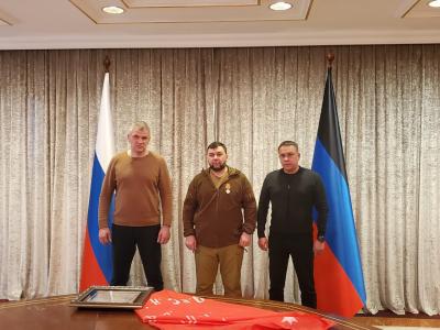 25 марта в рамках гуманитарной поездки депутатов Госдумы Казбека Тайсаева, Александра Ющенко, Алексея Куринного и сенатора Айрата Гибатдинова в ЛДНР состоялась встреча с главой Донецкой Народной Республики.