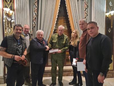 «Мы вот в таком составе сегодня приехали и привезли не только гуманитарный груз, но и отработали ряд вопросов, связанных с медициной, с образованием. Сегодня будет встреча с министром образования, есть ряд предложений, которые мы тоже обсудили по поручению Вячеслава Дмитриевича Володина в Москве, при поддержке Геннадия Андреевича Зюганова. И есть ряд вопросов, которые я сегодня буду решать с вашими министрами», – рассказал Казбек Тайсаев.