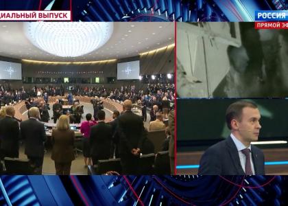 Одной из тем обсуждения стал проходящий в Брюсселе саммит НАТО. В студии показали кадры встречи лидеров стран-участников альянса. Юрий Афонин отметил радостную, праздничную атмосферу этого мероприятия, довольные, улыбающиеся лица. Они все еще ощущают себя вершителями мировой политики, сказал он, хотя наверняка уже чувствуют, что их гегемонии приходит конец. Саммит нарочно назначили на годовщину начала войны НАТО против Югославии, начала так называемых «гуманитарных бомбардировок», эта трагическая дата для них – праздник.