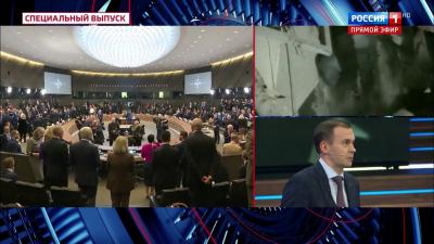 Одной из тем обсуждения стал проходящий в Брюсселе саммит НАТО. В студии показали кадры встречи лидеров стран-участников альянса. Юрий Афонин отметил радостную, праздничную атмосферу этого мероприятия, довольные, улыбающиеся лица. Они все еще ощущают себя вершителями мировой политики, сказал он, хотя наверняка уже чувствуют, что их гегемонии приходит конец. Саммит нарочно назначили на годовщину начала войны НАТО против Югославии, начала так называемых «гуманитарных бомбардировок», эта трагическая дата для них – праздник.
