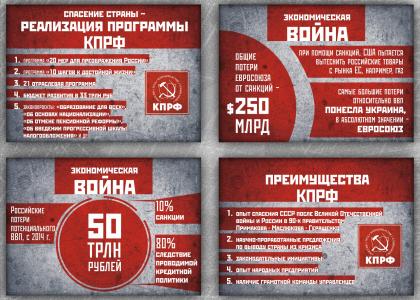 Преимущества КПРФ по сравнению с другими силами в стране заключаются в наличии научно-проработанных программ по выводу страны из кризиса, в частности, «20 неотложных мер для преображения России», «10 шагов к достойной жизни», 21 отраслевая программа. КПРФ также предлагает принять бюджет развития в 33 трлн рублей и имеет многочисленные законопроекты в интересах народа.
