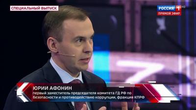 Первый заместитель Председателя ЦК КПРФ Ю. В. Афонин принял участие в программе «60 минут» на телеканале «Россия-1».