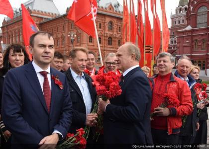 8 мая, в ознаменование 77-й годовщины Великой Победы, коммунисты, комсомольцы, союзники и сторонники КПРФ провели в Москве возложение венка и цветов к Могиле Неизвестного солдата у Кремлевской стены. Колонну под алыми стягами возглавил Председатель ЦК КПРФ, лидер Народно-Патриотических сил России Г.А. Зюганов.