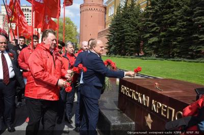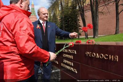8 мая, в ознаменование 77-й годовщины Великой Победы, коммунисты, комсомольцы, союзники и сторонники КПРФ провели в Москве возложение венка и цветов к Могиле Неизвестного солдата у Кремлевской стены. Колонну под алыми стягами возглавил Председатель ЦК КПРФ, лидер Народно-Патриотических сил России Г.А. Зюганов.