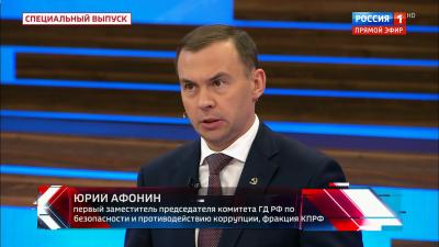 Первый заместитель Председателя ЦК КПРФ Ю.В. Афонин принял участие в программе «60 минут» на телеканале «Россия-1».