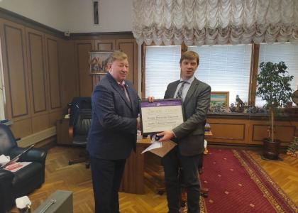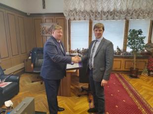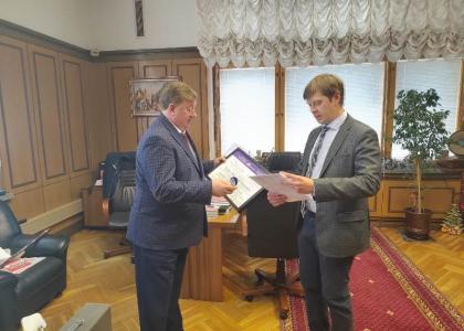 Директор Сибирского федерального научного центра агробиотехнологий РАН Кирилл Голохваст вручил диплом Почетного доктора СФНЦА РАН председателю комитета Госдумы по аграрным вопросам, академику РАН, доктору сельскохозяйственных наук, профессору Владимиру Ивановичу Кашину.