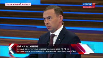 Первый заместитель Председателя ЦК КПРФ Ю. В. Афонин принял участие в программе «60 минут» на телеканале «Россия-1».