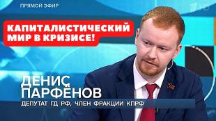 Депутат Государственной Думы, секретарь МГК КПРФ по идеологии Денис Парфенов принял участие в ток-шоу "Время покажет" на Первом канале.