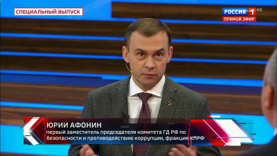 Первый заместитель Председателя ЦК КПРФ Ю.В. Афонин принял участие в программе «60 минут» на телеканале «Россия-1».